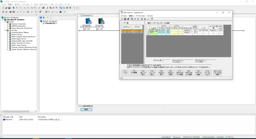 既設ではEthernet/IP通信の処理を複雑なラダーで作成されていました。タグデータリンクの使用をお客様に提案し、各局間の通信設定を管理しやすくしました。